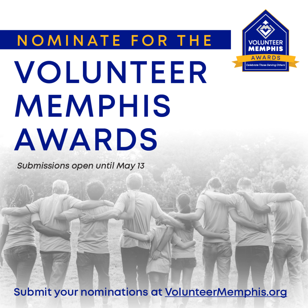 MEMPHIS, Tenn., April 4, 2022 – Volunteer Memphis wants you to nominate exceptional volunteers, nonprofits, businesses, and healthcare workers for the 5th annual Volunteer Memphis Awards. Nominations can be submitted online using the Volunteer Memphis website at https://volunteermemphis.org/volunteer-memphis-awards/.
